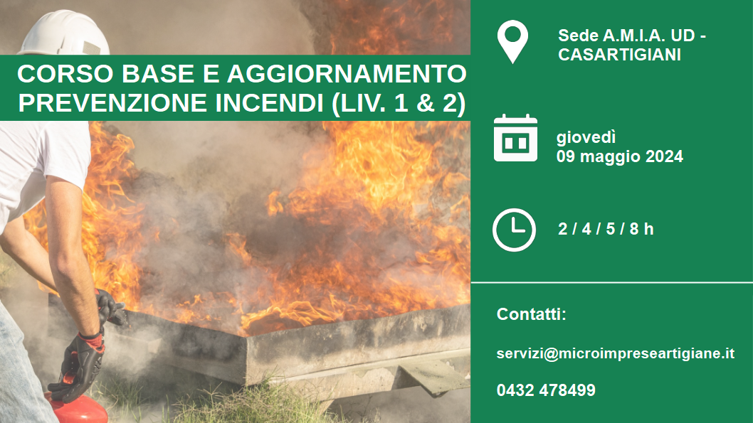 - CORSO BASE E AGGIORNAMENTO ANTINCENDIO (Livello 1 e Livello 2).