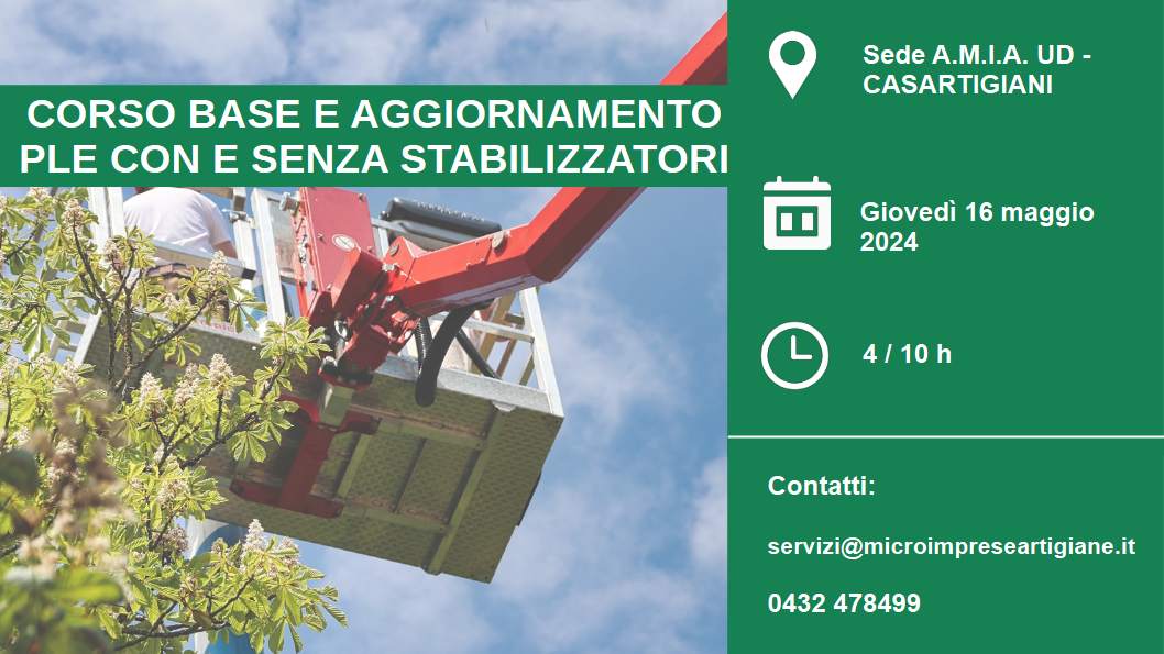 Il corso si terrà giovedì 16 maggio dalle ore 09.00 per la parte teorica presso la sede di A.M.I.A. UD – Casartigiani in Via Tavagnacco, 83/4 a Udine e per la parte pratica presso la Robicar di Fagagna (UD).