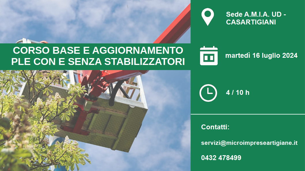 Per la sola parte teorica, il corso si terrà presso la sede di A.M.I.A. UD – Casartigiani in Via Tavagnacco, 83/4 a Udine il giorno martedì 16 luglio.