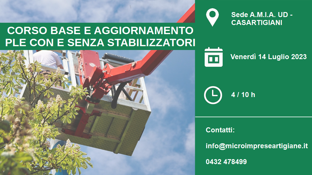 Per la parte teorica il corso si terrà presso la sede di A.M.I.A. UD – Casartigiani in Via Tavagnacco, 83/4 a Udine il giorno venerdì 14 luglio dalle ore 09.00.