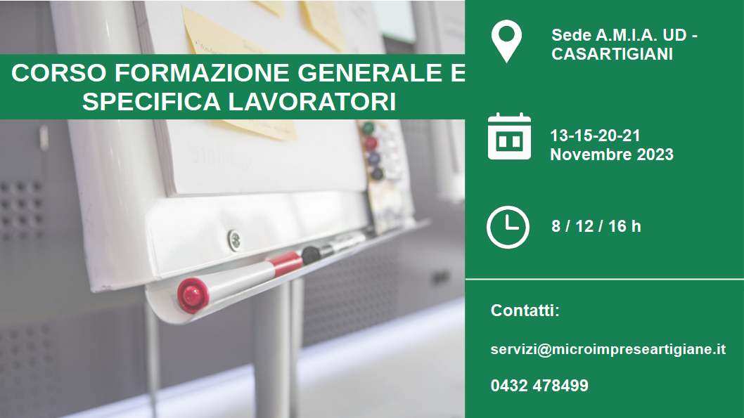 Il corso si terrà i giorni mercoledì 13, venerdì 15, mercoledì 20 e giovedì 21 novembre 2023 presso la sede di A.M.I.A. UD. – CASARTIGIANI in Via Tavagnacco 83/4 a Udine.