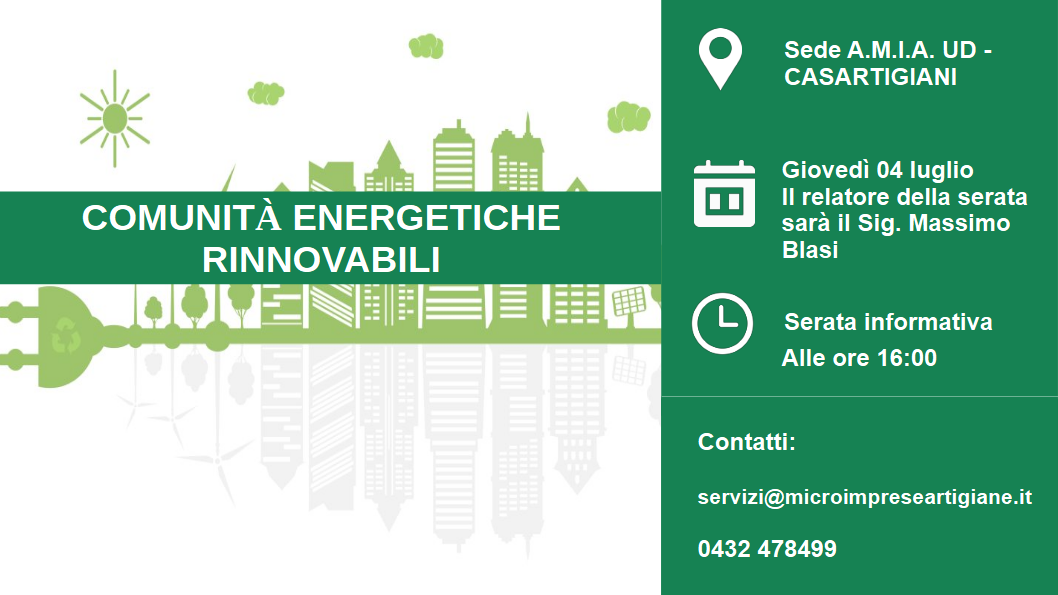 con la presente comunichiamo che è stato programmato per giovedì 04 luglio 2024 alle ore 16:00 l’incontro informativo, sulle comunità energetiche rinnovabili (CER).
