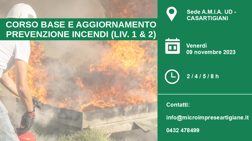 Il corso si terrà giovedì 09 novembre dalle ore 09:00 per la parte teorica presso la sede di A.M.I.A. UD – CASARTIGIANI in via Tavagnacco nr. 83/4 a Udine e per la parte pratica presso B.T. ANTINCENDIO in via IV Novembre nr. 44 a Feletto Umberto (UD).