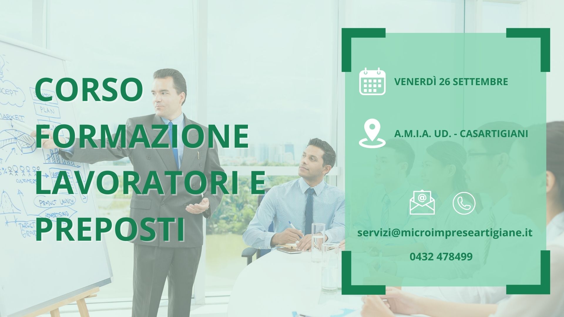Il corso si terrà presso la sede A.M.I.A. UD Casartigiani (Via Tavagnacco, 83/4 a Udine) il giorno venerdì 26 settembre.