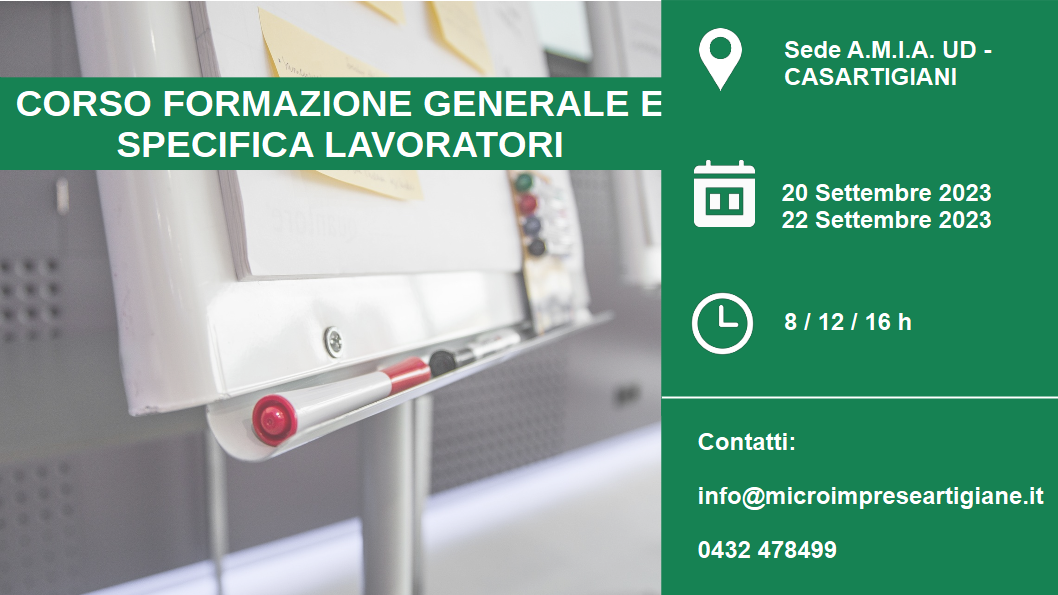 Il corso si terrà i giorni mercoledì 20 settembre e venerdì 22 settembre presso la sede di A.M.I.A. UD. – CASARTIGIANI in Via Tavagnacco 83/4 a Udine.