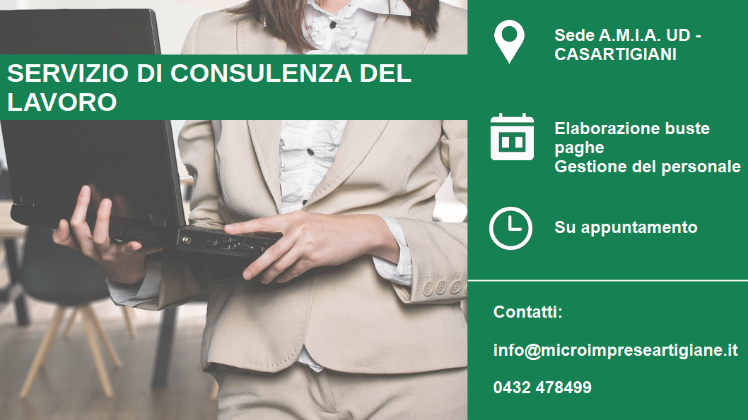 Comunichiamo che rimane attivo, internamente alla nostra struttura, il servizio di consulenza del lavoro, relativo all’elaborazione delle buste paghe e della gestione del personale.